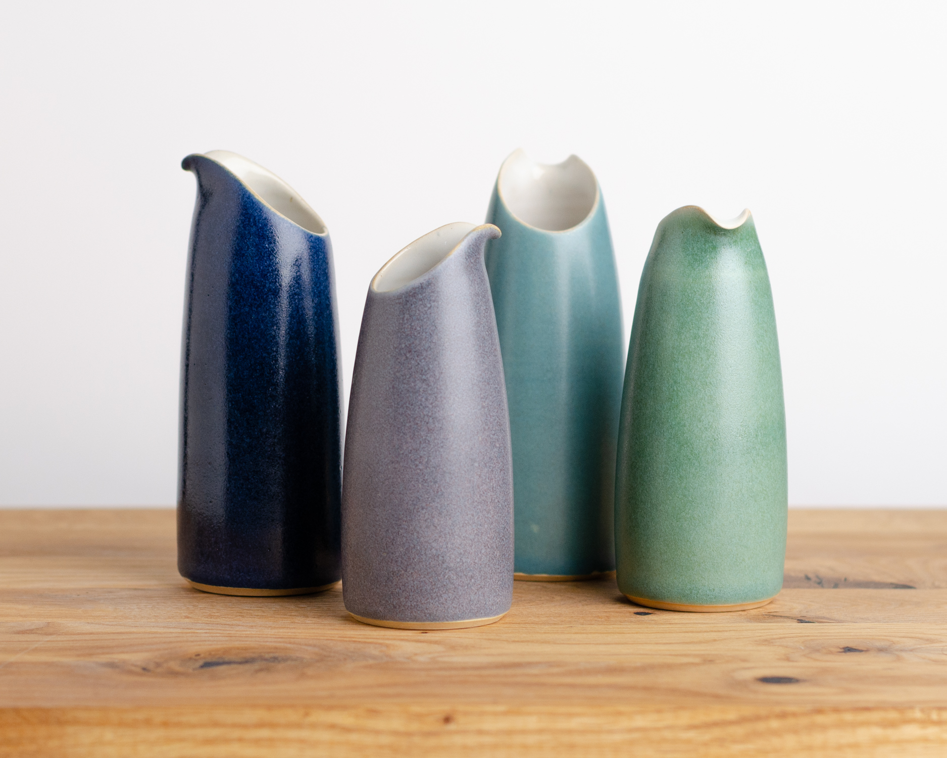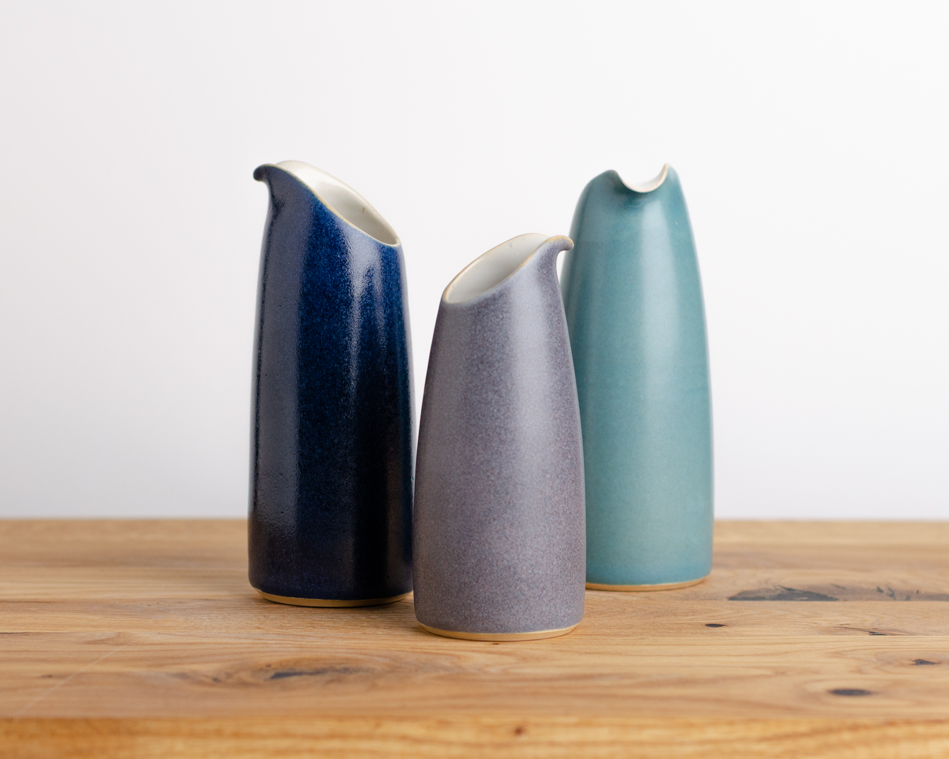 Krügli für Milch, Saucen oder andere geringe Mengen Flüssigkeit. Kann ebenfalls als kleine Vase verwendet werden. Innen glänzend weiss glasiert, aussen seidenmatt bunt glasiert. Höhe unterschiedlich, 9cm-11cm. Fassungsvermögen ca. 1dl.